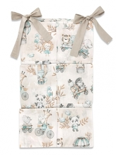 Kapsář na postýlku 6 kapes, bavlna, Pohoda v lese NATURAL - ecru/šedá