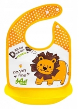Silikonový bryndáček s kapsičkou Lev, žlutý