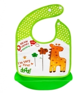 Silikonový bryndáček s kapsičkou Žirafa, zelený,