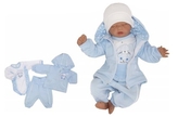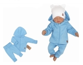 Z&Z Velurová, semišková tepláková souprava TEDDY s oušky - modrá, šedá, vel. 80; 80 (9-12m)