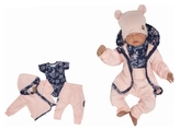 Z&Z 3-dílná tepláková soupravička, mikinka, tepláčky, bodýčko, Květy - růžová, granát; 56 (1-2m)