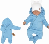 Z&Z Dětský teplákový overálek se šlapkama, kapucí a kapsičkou, modrý, vel. 68