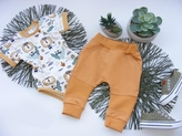 G-baby 2-dílná sada body kr. rukáv, tepláčky Lion - horčicová, vel. 98; 98 (2-3r)