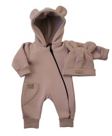 Oteplený dětský overal bez šlapek s kapucí + čepička, 2D, kakao, vel. 62; 62 (2-3m); béžová, hnědá