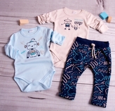 K-Baby 3-dílná sada - 2xbody dl. rukáv,tepláčky, New Robot Baby, béžová,sv. modrá, vel. 68; 68 (3-6m)