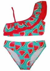 Dívčí dvoudílné plavky s volánkem - Noviti, Meloun, tyrkys/růžová, vel. 140/146; 140-146 (9-11r)
