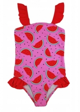 Dívčí jednodílné plavky s volánky - Noviti, Meloun, růžové, vel. 104/110; 104-110 (3-5r)