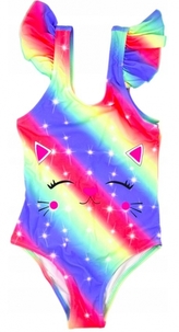 Dívčí jednodílné plavky s volánky - Noviti, Kočička, duhové, vel. 128/134