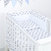 Mantinel s povlečením do postýlky, 3D sada, Obláčky, 135x100 cm, bílá, šedá; bílá, šedá; 100 % bavlna