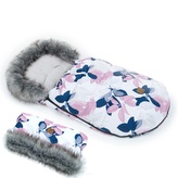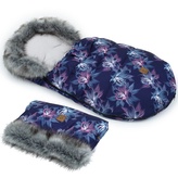 Zimní fusak Lux s kožešinkou + rukávník, Květy Neon, 50 x 100cm - šedý/granát; granát, šedá; polyester; 100 cm