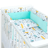 Mantinel s povlečením do postýlky, 3D sada, Car, 135x100 cm, bílá, tyrkys; bílá, tyrkysová; 100 % bavlna
