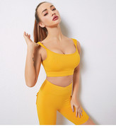 Sportovní set s krátkými legínami a kapsami, žlutá L