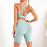 Sportovní set s krátkými legínami a kapsami, zelená M