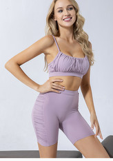 Sportovní set s krátkými legínami a kapsami, žlutá S