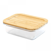 Dóza Pebbly, PKV-068, skleněná, objem 1,2 l, bambusové víko, obdelníkový tvar, zaoblené hrany