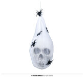 Dekorace pavučinový kokon s lebkou a pavouky 25 cm