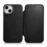 iCarer CE Oil Wax Premium Leather Folio Case skórzane etui iPhone 14 z klapką magnetyczne MagSafe czarny (AKI14220705-BK)