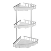 MSV rohová třípatrová polička TERESINA, do koupelny, světle šedá, hliník