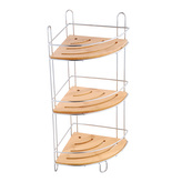 MSV rohová třípatrová polička JOY, do koupelny, chromovaný plast, bambus