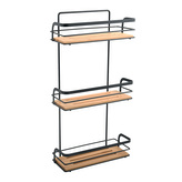 MSV polička s přísavkami HIKO, do koupelny, 3 patra, černá, ocel, bambus