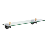 MSV nástěnná polička IANA, černá, ocel, bambus, sklo