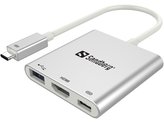 Sandberg Mini USB-C HUB, HDMI+USB, stříbrný