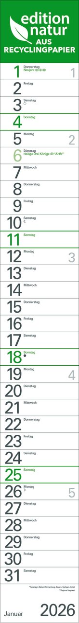 Streifenplaner Grün Recyclingpapier Edition Natur 2026