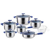 HOME ELEMENTS-HR sada nerez nádobí 13 dílná, skleněné modré poklice