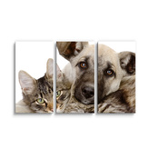 Obraz - 3-dílný Kočička a štěňátko: 120x80 cm