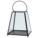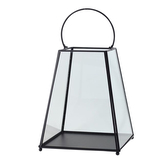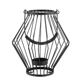 SVÍCEN KOVANÝ GEOMETRICKÝ S DRŽÁKEM A SKLENĚNOU VLOŽKOU 22X22X22CM ČERNÝ