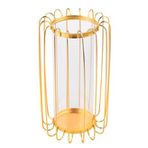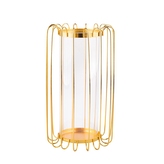 STOJAN NA SVÍČKY S METALOVÝM RÁMEČKEM A SKLENĚNÝM VLOŽKOU 16X16X28CM ZLATÝ