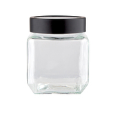 SKLENĚNÁ ČTVERCOVÁ NÁDOBKA S ČERNÝM VÍČKEM 500ML