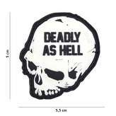 Gumová nášivka 101 Inc nápis Deadly as Hell - bílá