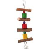 Hračka Bird Jewel závěsná s barevnými dřívky a zvonečkem 55x20cm