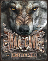 Plechová cedule Man Cave Wolf, 30 × 42 cm