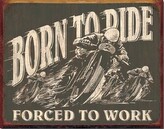 Plechová cedule BORN TO RIDE - Forced To Work, 40 × 31.5 cm