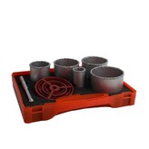 Sada vykružovacích karbidových korunek 33,53,67,73,83mm+středící vrták+adaptér