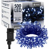LED světelný řetěz - 27,5m, 500LED, 8 funkcí, paměť, IP44, modrá