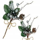 Větvička s černými jeřabinami a šiškou 25cm, vánoční dekorace