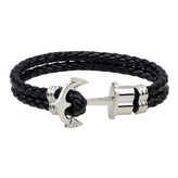 Kožený náramek Gaira Anchor 3 - černý-stříbrný