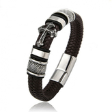 Kožený náramek Gaira Anchor - černý-stříbrný
