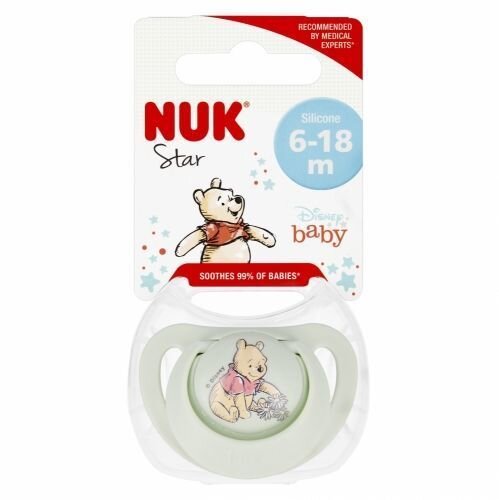 Niestety, niemowlęta nie mogą wyjaśnić, dlaczego kochają swój NUK Star tak bardzo. Ale podejrzewamy, że przyczyną jest miłe uczucie w buzi - górna część smoczka dopasowuje się delikatnie do podniebienia. Znajduje się tam miękka strefa, materiał smoczka jest bardzo cienki i wyjątkowo gładki. Jednocześnie dolna część smoczka pozostawia wystarczająco dużo miejsca dla naturalnych ruchów ssących. Ponieważ gumka smoczka jest wąska i spłaszczona, prawie nie ma nacisku na zęby oraz szczękę. W zestawie znajduje się wytrzymałe pudełko wielokrotnego użytku do bezpiecznego i czystego przechowywania. Unikalne wzory i kolory. Opakowanie zawiera 1 szt. silikonowego smoczka dla dzieci w wieku 6-18m wraz z pudełkiem. Wymiary/waga: wymiary opakowania (dł. x wys. x gł.)[cm]: 6x12x5, waga produktu w opakowaniu [kg]: 0,02 kg. Produkt przeznaczony dla dzieci w wieku: 6-18m. Pakowany w pudełeczku z zawieszką. Wyprodukowano w Niemczech.
