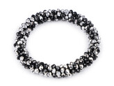Náramek / gumička z broušených korálků - 1 ks - 12 černá stříbrná