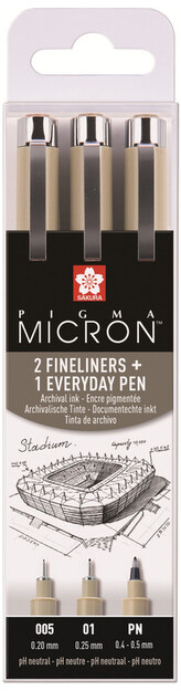 Cienkopisy kreślarskie 3szt. 0,20, 025, 04-05mm Urban, Pigma Micron, Sakura