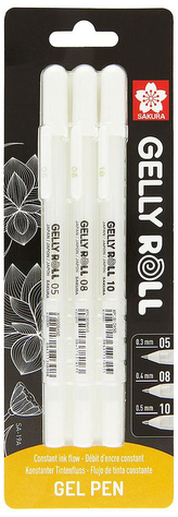 Długopisy żelowe Gelly Roll kpl. 3 szt. 05, 08, 10 biały BLXPGB3A, Sakura