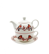 Porcelánová konvička s hrnkem a podšálkem VÁNOČNÍ PTÁČCI 3 v krabičce 300/450 ml