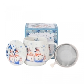 Porcelánový hrnek VÁNOČNÍ PTÁČCI 3, 460 ml v krabičce s kovovým sítkem na čaj