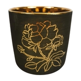 Keramický květináč béžový se zlatým vzorem květiny
