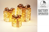 LED dekorace - kulatý champagne dárek s mašlí, sada 3ks s časovačem