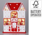 Červenobílý LED adventní kalendář - domeček, 37 cm